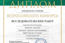 Наш педагог Баскакова Елена Александровна получила диплом 2 степени Всероссийского конкурса исследовательских работ!
