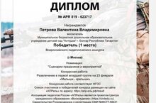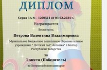 Наш педагог Петрова Валентина Владимировна заняла 1 место во Всероссийском конкурсе "Ассоциация педагогов России".