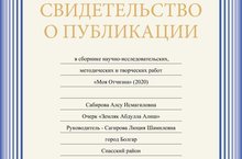 С публикацией материала в сборнике научно-исследовательских, методических и творческих работ "Моя Отчизна" (2020) .Поздравляем Сабирову Алсу Исмагиловну!