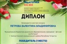 Наш педагог Петрова Валентина Владимировна получила диплом за 1 место!