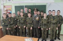 Урок Мужества провел в 7 классе старший прапорщик Козлов Александр Владимирович. Он рассказал о своём боевом пути, вспомнил интересные случаи, показал фотографии.