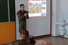 12 февраля командиром-воспитателем 5 класса Афониной Еленой Владимировной проведен патриотический урок, посвященный участникам Специальной военной операции на Украине. В ходе занятия ребята посмотрели тематические видеоролики и смогли задать вопросы приглашенному гостю - участнику СВО Елатину Артему Николаевичу, который сейчас находится в отпуске.