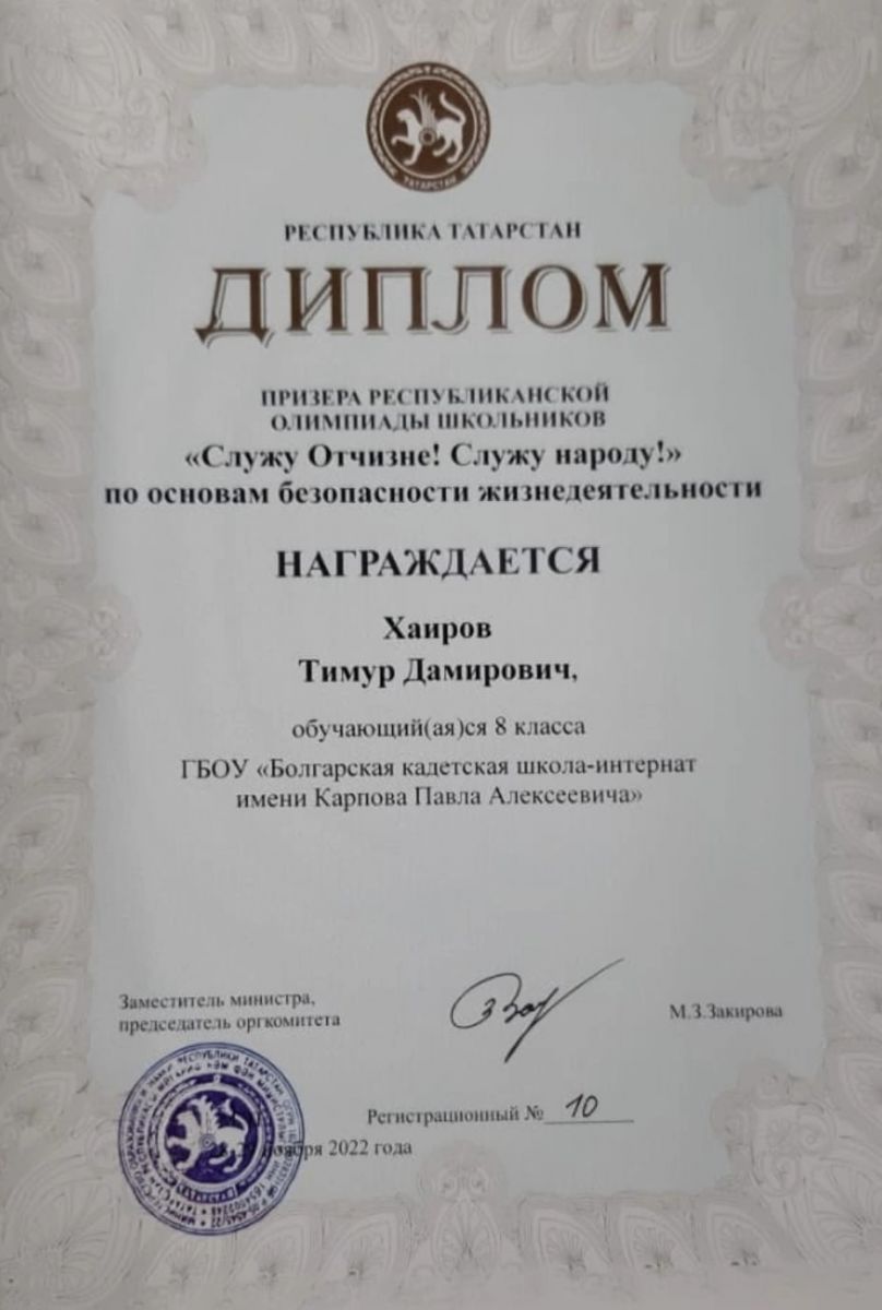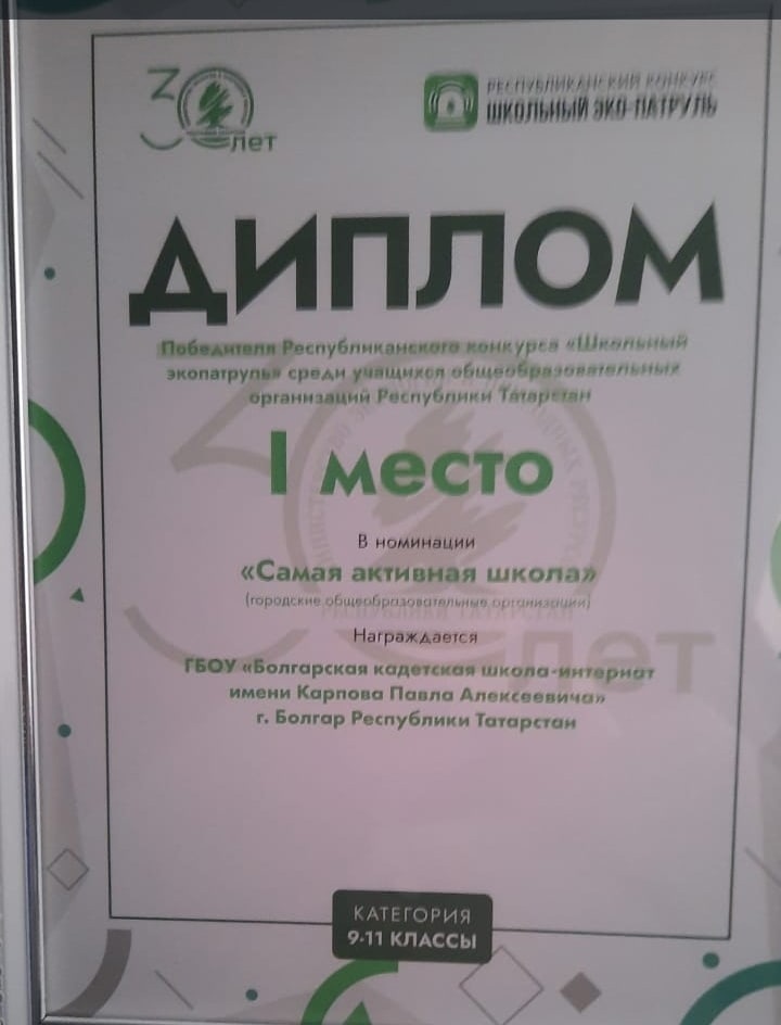 Государственное бюджетное общеобразовательное учреждение "Болгарская кадетская школа-интернат имени Карпова Павла Алексеевича" / Татарстан Республикасы Мәгариф һәм Фән министрлыгы, Дәүләт бюджет гомуми белем бирү учреждениясе “Карпов Павел Алексей улы исемендәге Болгар кадет-интернат мәктәбе”