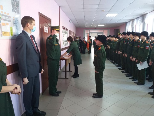 Опубликовано: 20.02.202120.02.2021 в преддверии праздника приуроченного празднованию Дня защитника Отечества в нашей школе прошла праздничная линейка, на которой почётным гостем стал заместитель Руководителя Исполнительного комитета по социальным вопросам Спасского муниципального района Савинов Евгений Викторович. Он поздравил кадет и педагогов с наступающим праздником и вручил очередные звания наиболее отличившимся кадетам.