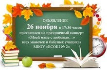 26 ноября в17:30 часов концертная программа «Моей маме с любовью» (с приглашением мам)
