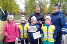 Вручены памятки по безопасности поведения на дороге и по правилам дорожного движения детям, водителю школьного автобуса.