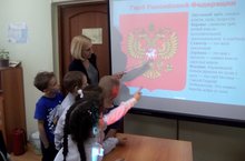 Учащиеся группы продленного дня стали участниками интеллектуальной игры "Своя игра". Она началась с гимна России.