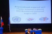 3 декабря в 11:00 в рамках XXIX Московской школьной модели ООН, посвященной Международному дню прав человека, и ежегодно проводимой Российской ассоциацией содействия ООН при поддержке МГИМО Уполномоченным по правам человека Татьяной Москальковой был проведен Всероссийский открытый урок «Права человека» для школьников.