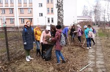 Вооружившись необходимым инвентарем, ребята со своими классными руководителями дружно вышли на борьбу с беспорядком. Все с удовольствием приводили в порядок школьную территорию.
