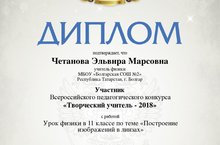 Четанова Э.М. приняла участие во Всероссийском конкурсе для учителей-предметников и воспитателей «Творческий учитель - 2018» 26.04.2018
