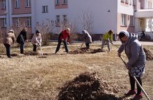 На этой неделе стартовал традиционный весенний субботник. Собирали мусор, сгребали прошлогоднюю листву и траву, наводили порядок в клумбах.