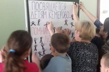 Наши ребята почтили память приклеив чёрную ленту к доске скорби.