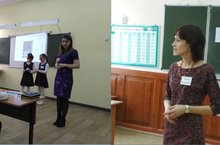 Гиматдинова Г.Н. учитель англ.языка и Сабирова Э.Р. учитель родного языка во время конкурсных уроков