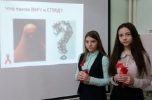 В этот день школьники и учителя носили на груди алые ленточки - символ борьбы со СПИДом. После уроков эти ленточки были прикреплены ими к стендовой доске.