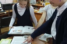 Целью библиотечно–библиографического урока, проведенного в школьном ИБЦ в 5б классе было ознакомление учащихся с энциклопедическими, тематическими, филологическими словарями, обучение работе с ними, библиографическому поиску по алгоритму.