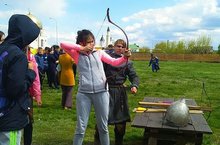Команда девчонок в составе 4 человек, под руководством Потаповой С.А. стали участникам эстафеты. Во время прохождения маршрута им приходилось преодолеть интеллектуальные задания и историко-спортивные игры: стрельба из лука, метание копья, бег с ложками и др. Все это на время и на качество исполнения.