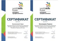 С 7 по 9 апреля наши учащиеся Выжлёнкова Софья 10 класс (рук. Выжлёнкова О.В.) и Виноградов Родион 8 класс (рук. Никиташин Д.А.) приняли участие в открытом региональном чемпионате «Молодые профессионалы» (WorldSkills Russia) Республики Татарстан 2016. Соревновались среди школьников в конкурсе «Я мастер», презентовали свои изделия в рамках компетенций, пообщались с экспертами.