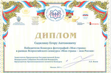 Награду – диплом и подарок получил и наш ученик 1 а класса Садилин Егор – победитель заочного конкурса фотографий «Моя страна», сам Егор поехать в Москву не смог, его представителем была Филиппова Ю.Н.