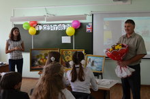 К двум 7-м классам был приглашён водитель школьного автобуса Пронин Н.И., который рассказал о своём хобби. Он с детства очень хорошо рисует. Николай Иванович продемонстрировал несколько картин, а остальные его картины ребята увидели на слайдах.