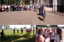 После музыкальной зарядки вся школа разделилась на несколько групп и отправились, кто на центральный стадион, кто то на площадку возле спортивного комплекса Олимп, старшие классы пошли к лесу, возле озера Рабига для дальнейшего прохождения военно-спортивной игры «Зарница».