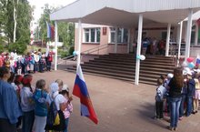По сигналу «Внимание всем! В здании произошло возгорание, очаг находится на 2 этаже в северной стороне» началась эвакуация, учащиеся во главе с учителями выстроились во дворе школы. После чего директор школы, Л.В. Борюшкина, объявила об открытии «Дня защиты детей».