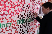 15 апреля в нашей школе проходила единая Республиканская акция «Пожелание ветерану», посвященная 70 летию Победы. Лидеры ДШД изготовили большой плакат, на который наклеили 70 красных звезд. В центре звёзд ребята оставляли слова благодарности и пожелания ветеранам Великой Отечественной войны.