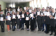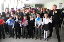 С раннего утра ребятня начальных и средних классов толпились на 2 этаже, ждали призы за свой вид в розовых очках. Каких только видов очков не было, и в виде долларов, и в виде бабочек, звёздочек, сердечек.