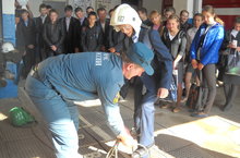 13 сентября 8 классы ходили на экскурсию в пожарную часть Спасского муниципального района. Подростки с интересом рассматривали боевой пожарный автомобиль с оборудованием, применяемым при тушении, а также не упустили возможности посидеть в кабине пожарного автомобиля и примерить на себя «боевую» одежду огнеборцев.