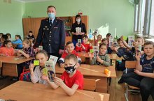 Сотрудники Госавтоинспекции проводят уроки дорожной безопасности для детей в пришкольном лагере. 26.03.2021