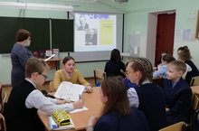 Учащиеся 7 "б" класса посетили школьный музей, где экскурсию им провели ученики 6 "б" класса под руководством Потаповой С.А.