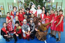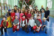 Для 5-6 классов было развлечение от Деда Мороза, Снегурочки и нечисти. Вокруг ёлочки ребята устроили настоящие соревнования.