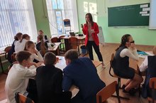 На базе МБОУ «БСОШ № 1" Сарандаева И.А. учитель русского языка и литературы показала конкурсный урок.