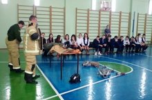 В рамках месячника гражданской обороны между школьниками и кадетами прошли соревнования на быстроту и правильность использования пожарного рукава.