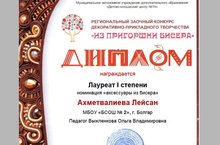 Ахметвалиева Лейсан, ученица 11 класса стала Лауреатом 1 степени в региональном конкурсе "Из пригоршни бисера" 22.05.2020