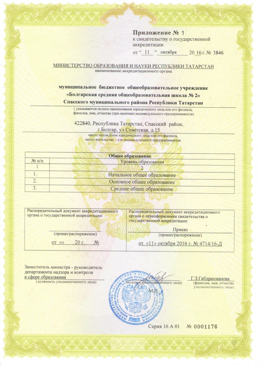 - Приложение №1 к Свидетельству о ГА / ГА турында таныклыкка №1 кушымта