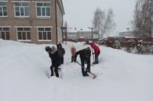 Сегодня, 14 января 2021 г., юнармейцы нашей школы вооружились лопатами и пришли на помощь подшефному детскому саду «Солнышко». Ребята расчистили дорожки от снега и заносов.