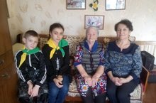 Воспитанники санаторной школы-интернат побывали в гостях у Леонтьевой Розы Ивановны. Она очень много рассказала историй, которые ее постигли в годы ВОВ. Как она маленькой девочкой испытывала голод, страх и боль. Прочитала стихи собственного сочинения. На прощание и на долгую память сделали фото.