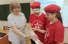 С юнармейцами 8 класса был проведён медицинский лекторий на тему:"Профилактика травматизма". Школьная медицинская сестра Прокофьева Ирина Владимировна познакомила детей с видами травм и на практике показала основные приёмы оказания первой помощи.