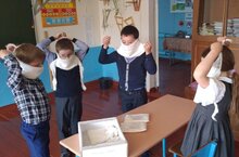 В филиале школы села Вожи в рамках Месячника по охране труда вспомнили, как пользоваться ватно- марлевыми повязками.