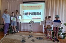В пришкольном лагере "Летняя сказка" Силантьева С. В. провела занятие- дискуссию "Борьба с коррупцией ". Разделившись на команды, ребята разгадывали ребусы, познакомились со значениями слов и выражений. В конце занятия нарисовали рисунки по теме. -