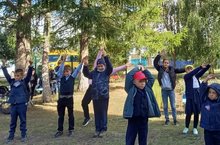 Активисты детского движения провели небольшую беседу о терроризме. Учащиеся начальных классов вышли на улицу, рисовали мелками на асфальте.