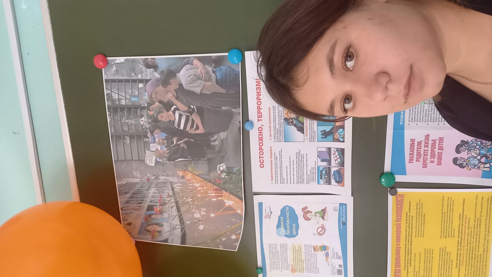 1 сентября 2004 года во время торжественной линейки, посвященной началу учебного года. В течение двух с половиной дней террористы удерживали в заминированном здании людей. Жизнь детей была в опасности. Презентацию смотрели в полной тишине,каждый понимал серьезность разговора. Зажженные свечи символизировали поклонение перед погибшими людьми.