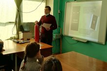Учащимися провели вначале историческую экскурсию. Вспомнили понятия что такое пожар, огонь. Напомнили ученикам что делать в случае пожара в школе.