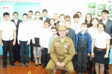 14 февраля 2015 г. в школе состоялась незабываемая встреча с участником боевых действий в Афганистане Терентьевым Сергеем Васильевичем, нашим односельчаниным. Сергей Васильевич рассказал о том, как служилось советским солдатам на афганской земле, какие трудности приходилось преодолевать. Те трудные годы очень сплачивали ребят, делали друзьями навсегда. Ребята задавали вопросы о боевых наградах, о встречах с боевыми друзьями в мирное время. В конце встречи Сергей Васильевич пожелал ребятам расти здоровыми, успешными, быть верными сынами и дочерьми России.