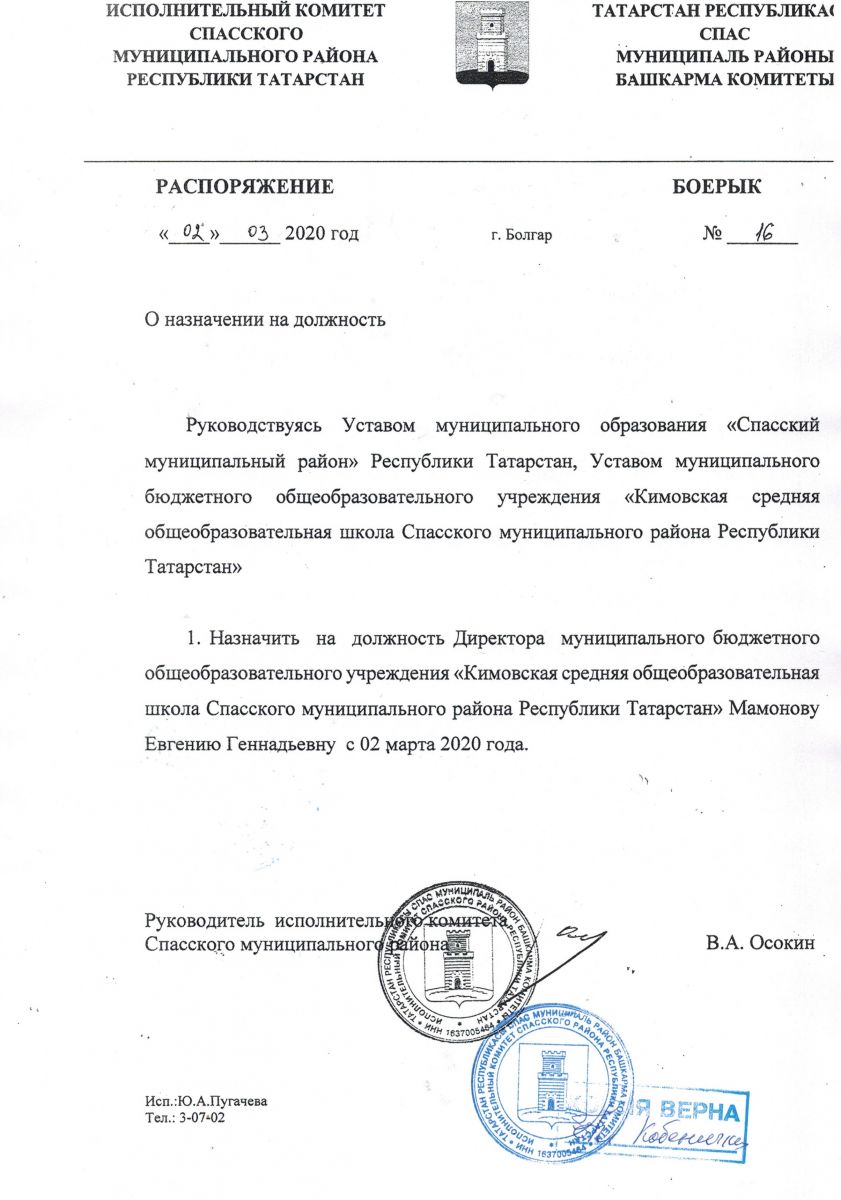 муниципальное бюджетное общеобразовательное учреждение "Кимовская средняя общеобразовательная школа Спасского муниципального района Республики Татарстан"/"Татарстан Республикасы Спас муниципаль районы Ким урта гомуми белем бирү мәктәбе" муниципаль бюджет гомуми белем бирү учреждениесе