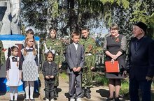 На митинге слово предоставили мулле д.Тукай Сибгатуллину Х. Он сначала прочитал Азан. После Азана рассказал присутствующим про свои детские годы ,которые очень тесно связаны с военнами годами.Пожелал ребятам счастливого,мирного детства.