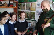 В рамках месячника гражданско -патриотической работы, учащиеся 1-4 классов совешили экскурсию в школьный музей поискового отряда "БУЛГАР".Руководитель отряда Андреянов Б.А. рассказал о трудной и опасной работе отряда.Учащиеся посмотрели личные вещи солдат,осколки снарядов.