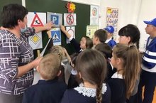 Ребята разделились на две команды и прошли разные станции, где были задания на знания дорожных знаков, сигналов светофора, регулировщика и многое другое.