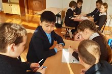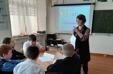 Внеклассное мероприятие по русскому языку ко Дню родного языка для учащихся 5-6 классов провела Лукашина Н.А. Для двух команд "Знатоки" и "Грамотеи" были предложены различные задания: поставьте ударение, отгадайте зашифрованное слово, подберите синонимы и антонимы, исправьте пословицу, замените фразеологизм синонимом, собери слова и др. В упорной борьбе победу одержала команда "Грамотеи"