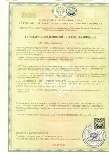 Санитарно - эпидемиологическое заключение